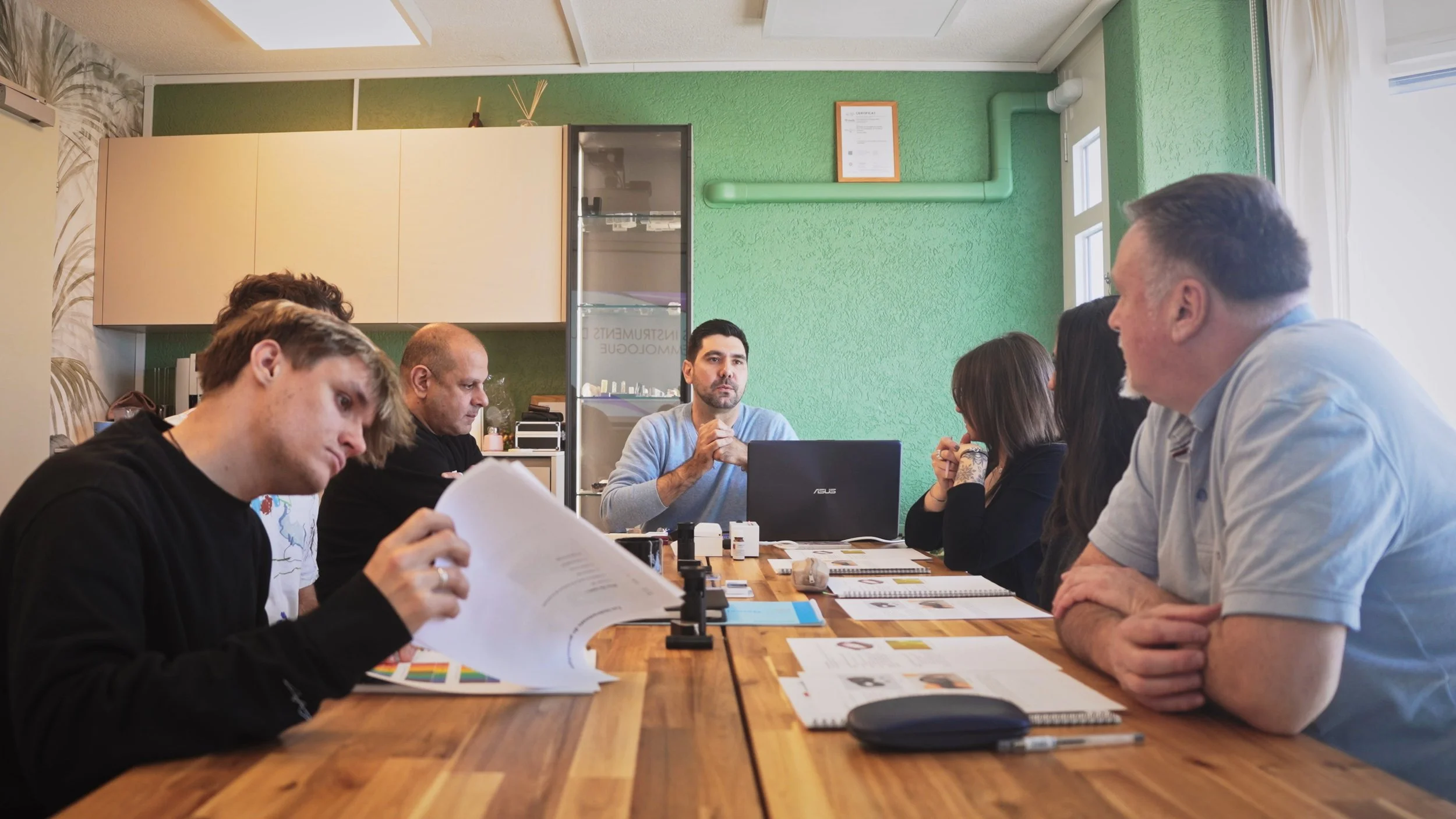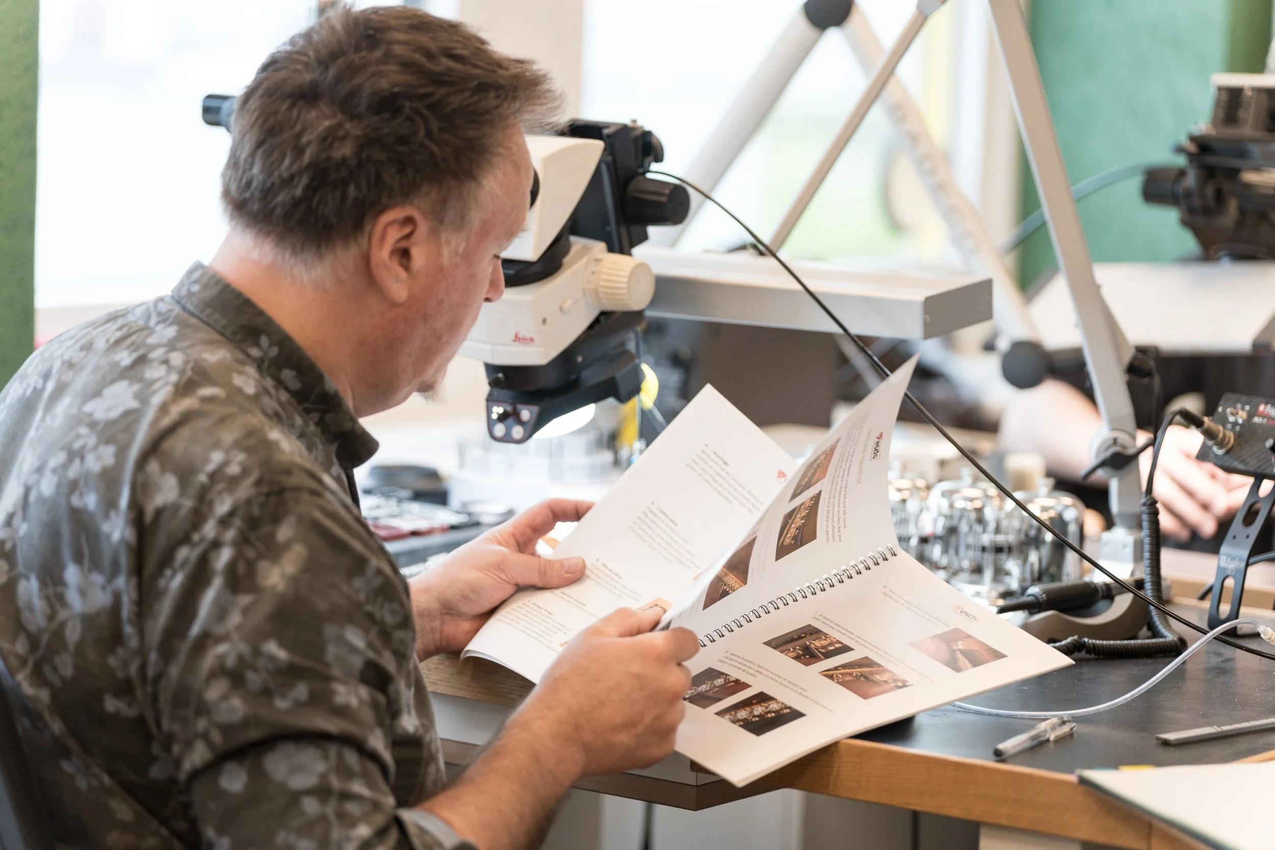 Des bijoutiers indépendants viennent apprendre / parfaire leurs connaissances en sertissage.